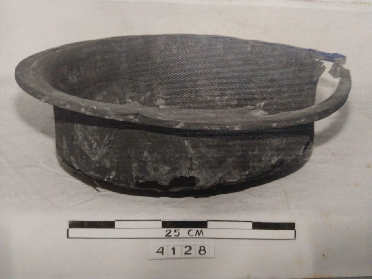 Tempayan ini terbuat dari bahan kaolin, yang berbentuk bulat. Bermulut sempit, bibir mengarah keluar dan memiliki telinga 4 ( empat ) yang berbentuk horisontal. Tempayan ini berglasir warna coklat kusam, yang berakhir pada lekukan bagian bawah badan tempayan, dan alas tidak merata sebgian glasir terkelupas.