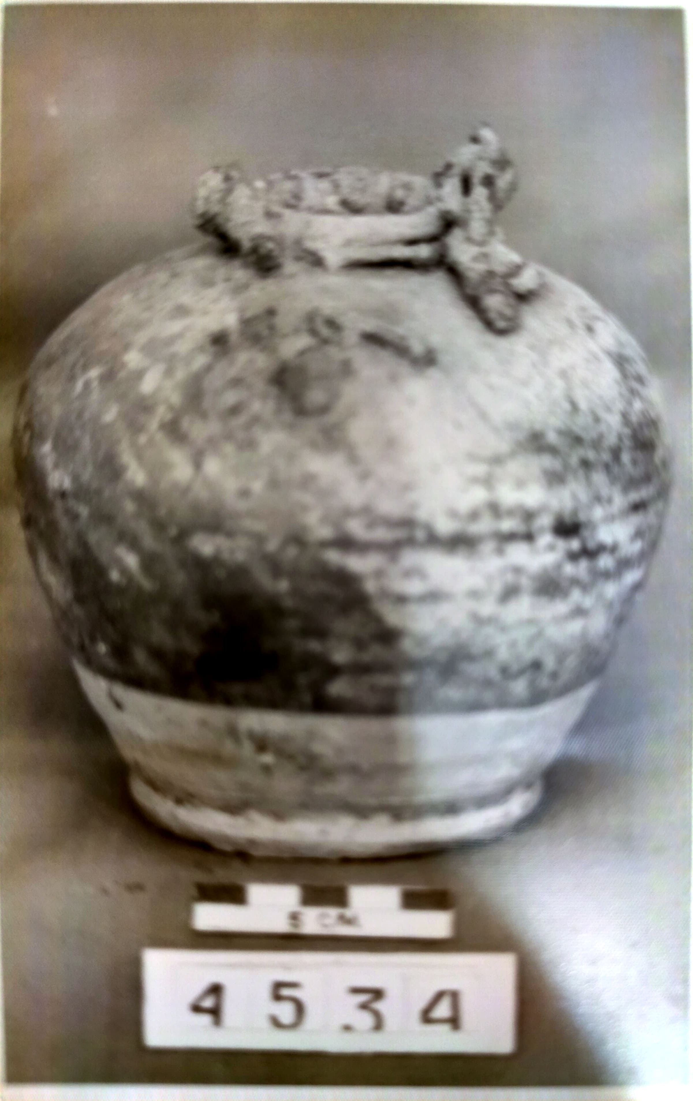 Dasar datar, badan cembung, bibir membalik keluar, mulut sempit