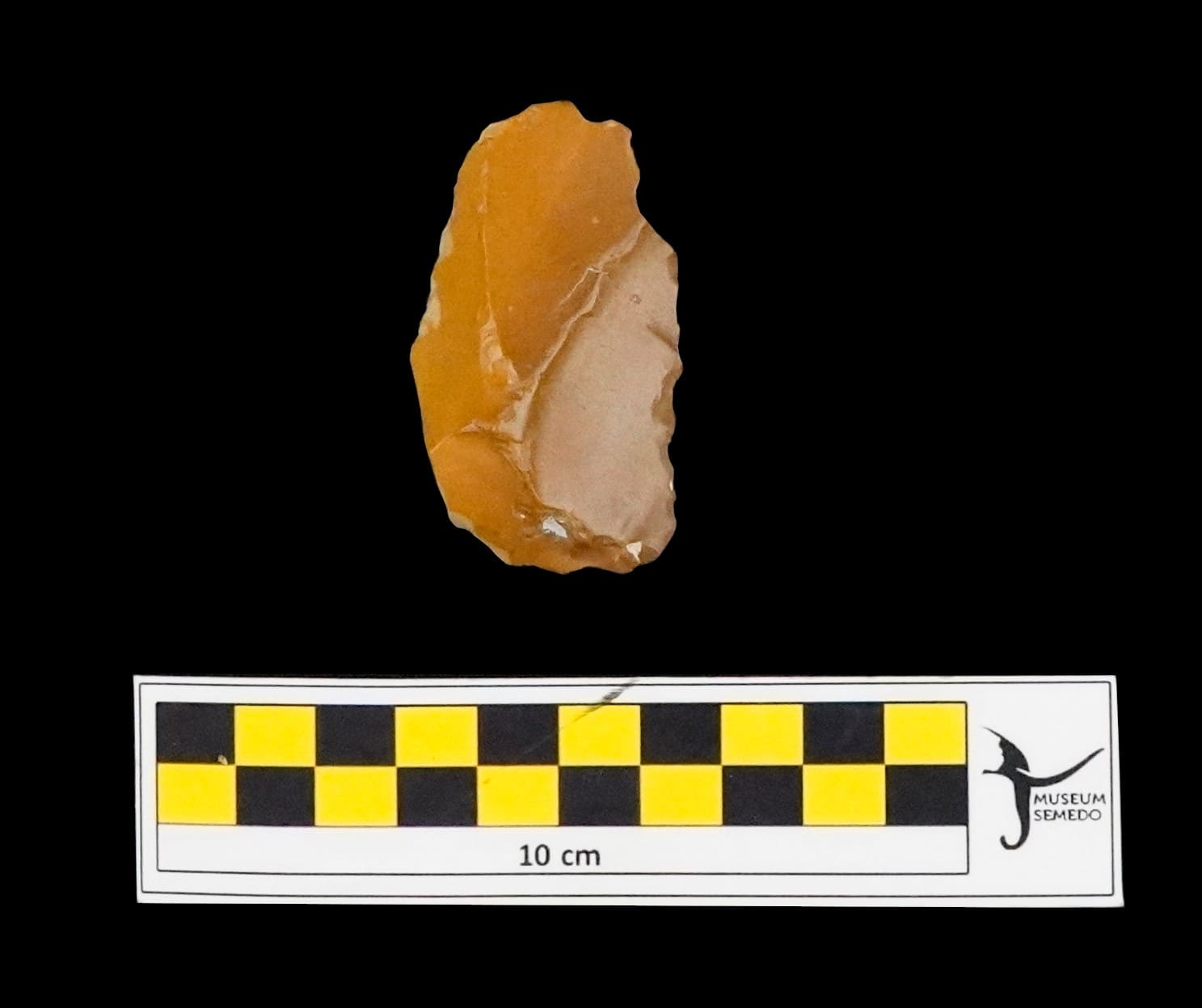 Dasar datar, badan cembung, bibir agak membalik keluar, mulut sempit.