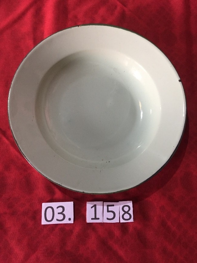 Dasar datar, badan cembung, mulut sempit, bibir membalik keluar