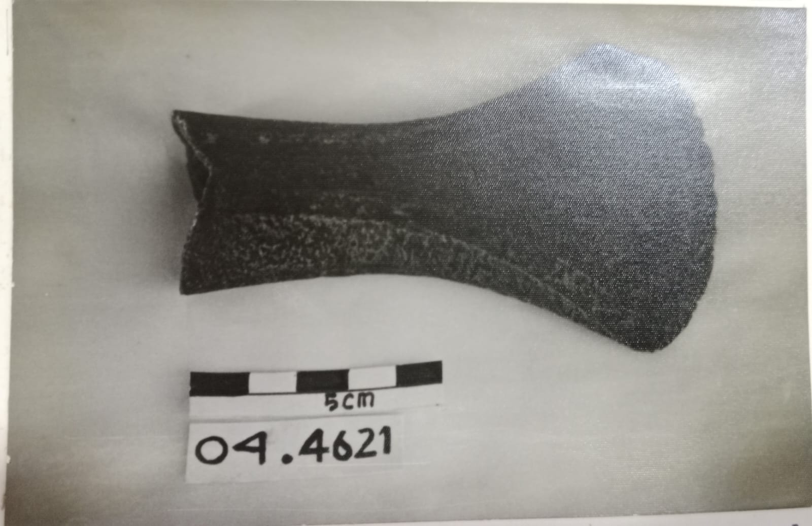 Terbuat dari batuan, bentuk bulat lonjong kecil, bibir membalik keluar dengan glasir warna coklat. Pada bahu terdapat enam buah telinga vertikal (patah semua). Hiasan relief tekan, cetak dan gores. Pada badan terdapat due ekor naga horizontal dan dibawahnya terdapat motif gelombang. Digunakan untuk tempat air tuak.