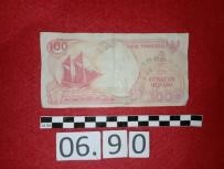 Terbuat dari tanah liat/kaolin, bentuk bulat, berleher panjang, mulut lebar dengan bibir lebar membalik keluar, berglasir warna coklat tidak merata. Hiasan motif pinggir awan dan garis-garis melingkar. Vietnam abad 15-16 M.