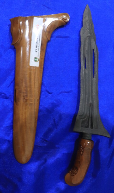 Terbuat dari kayu, bentuk persegi panjang, terdiri dari wadah dan tutup. Pada bagian depan dihiasi motif tanaman bunga berwarna kuning keemasan. Digunakan sebagai wadah kinang.