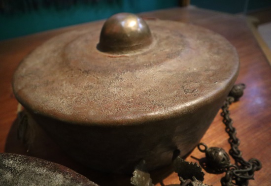 Benda ini terbuat dari bahan dasar kayu, berwarna coklat, berbentuk bundar dibagian tengah ada pegangan. Berfungsi untuk alat mengambil air. Dibagian tengah badan dan bawah timba diikat dengan klam