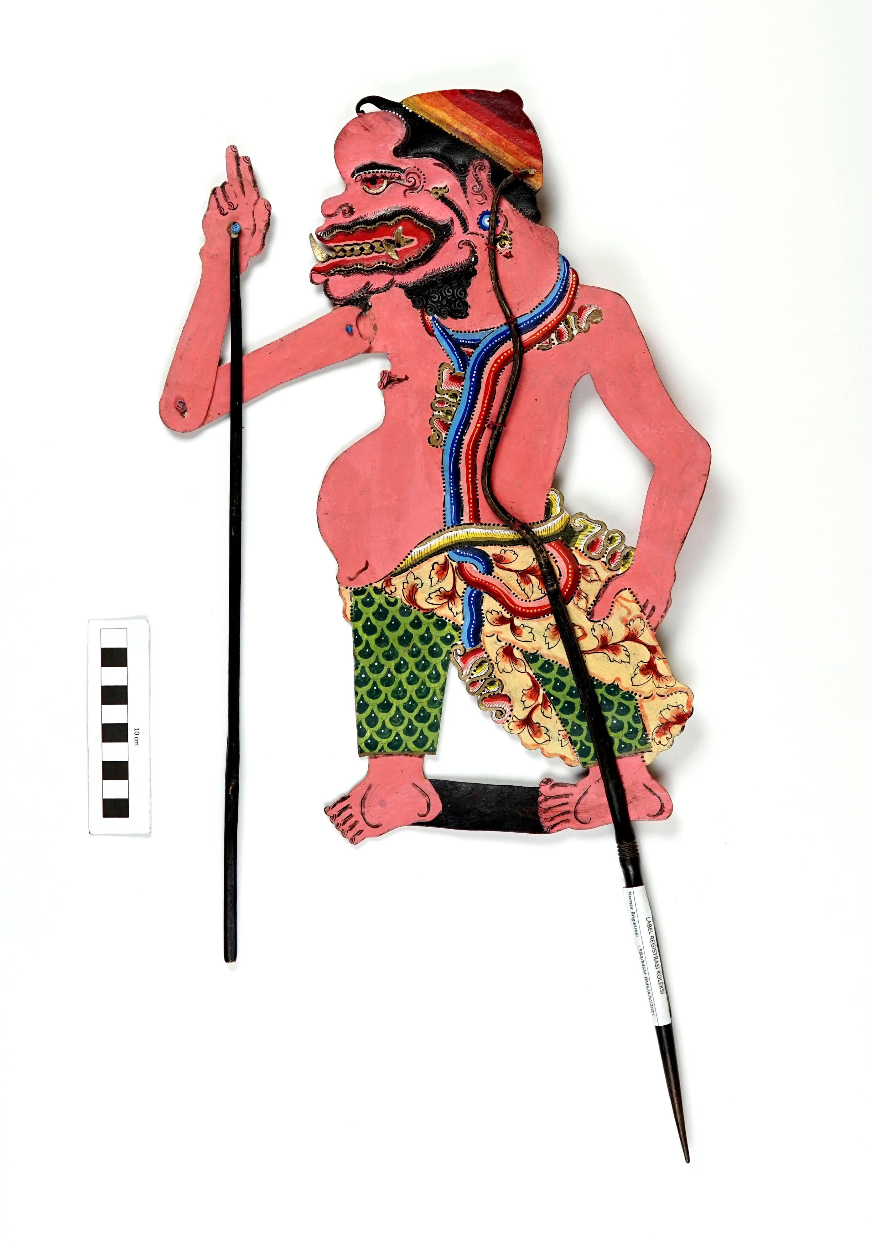 Uraian a. Bagian : Satu Set Wayang Kulit Purwa Banyumasan b. Bentuk : Pipih c. Bahan : Kulit d. Teknik : Tatahan e. Warna : Jambon f. Dekorasi : Sunggingan g. Ornamen : Kethu, Sabuk, Dodot, Celana panjang h. Tanda tanda : Lucu i. Asesori : Giwang, Kalung, Sampur j. Fungsi : Buta repat k. Simbol : Lucu l. Arti : (-) m. Gaya : Gemagus n. Kelengkapan : Satu Set Wayang Purwa Banyumasan