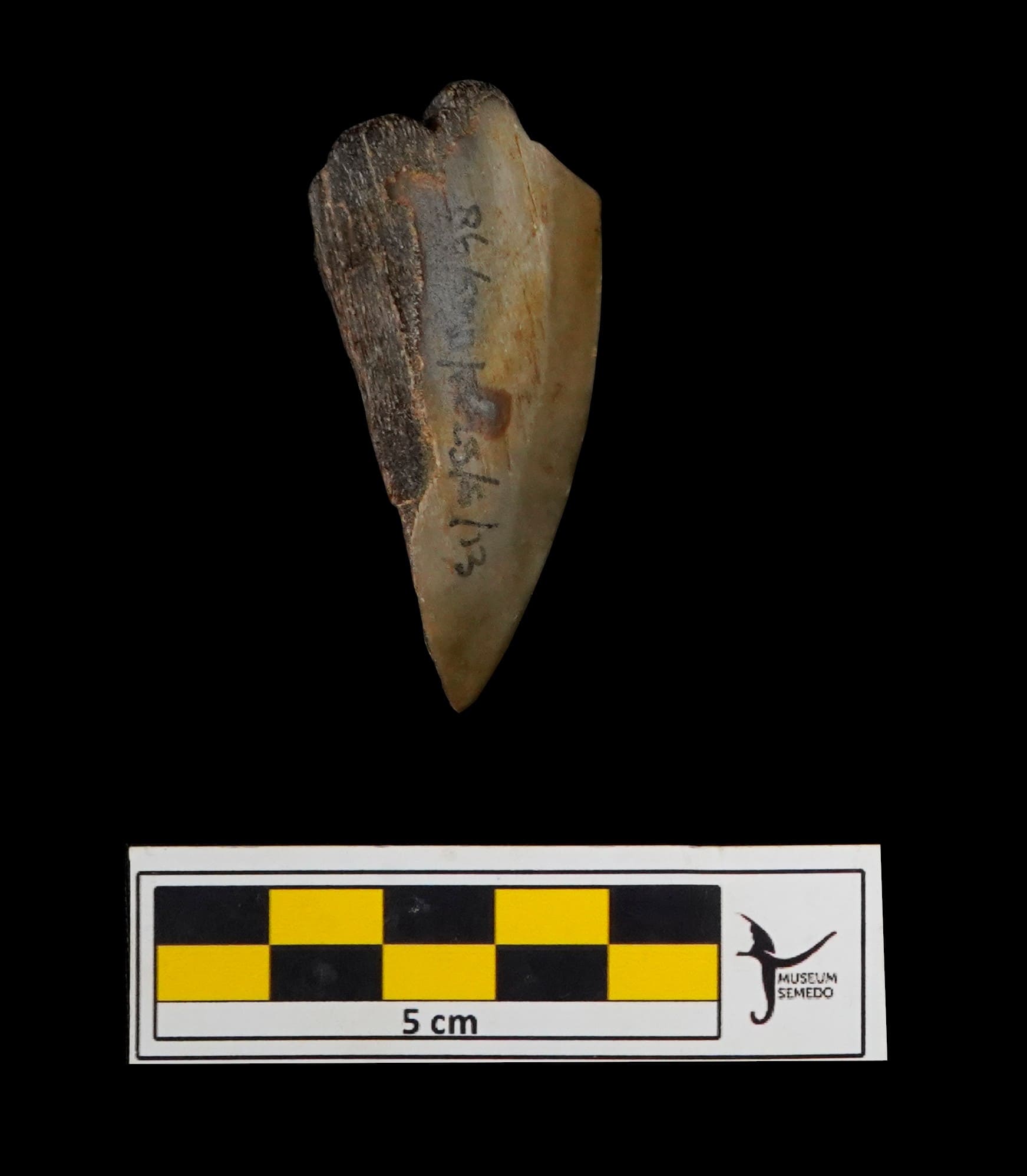 Sebuah keris yang terbuat dari besi berwarna abu kecoklatan. Bentuk dari bilah keris ini panjang berkeluk-keluk dengan jumlah 3 luk pada masing-masing sisi. Memiliki tekstur asli yang diduga hasil proses pembakaran logam besi. Bagian bawahnya terdapat besi runcing sebagai tempat memegang keris. Keris ini dilengkapi dengan sarung yang terbuat dari kayu. Berwarna dasar cokelat, dengan tambahan warna kuning, hijau dan emas pada bagian bawahnya dan juga kuning pada bagian atasnya. Bentuknya panjang mengecil ke atas. Pada bagian sarung terdapat tulisan “Jati Roga 4 6.4”. Adapun detail ukuran dari keris ini sebagai berikut: • Sarung: panjang 38 cm, lebar 5 cm, dan diameter 4 cm • Bilah: panjang 29.5 cm, lebar 3.7 cm, dan tebal 0.575 cm • Pegangan : panjang 12.9 cm Kondisi dari keris ini tidak lengkap karena bagian lapisan pegangannya tidak ada. Pada ujung mata keris terdapat kerusakan berupa bagian yang tidak rata. Warna pada sarungnya sedikit memudar.