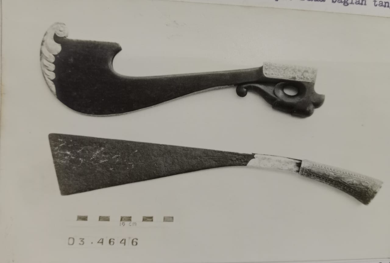 Terbuat dari kayu dicat warna kehitaman. Bentuk muka bulat panjang, berambut terbuat dari ijuk, bertelinga tegak, hidung mancung, pipi rata, berjambang, berkunis serta berjanggut dari ijuk, mulut terbuka menyeringai dengan gigi kelihatan, bertaring, bibir tebal dan berdagu rata. Digunakan sebagai kelengkapan peralatan perdukunan dalam upacara adat.