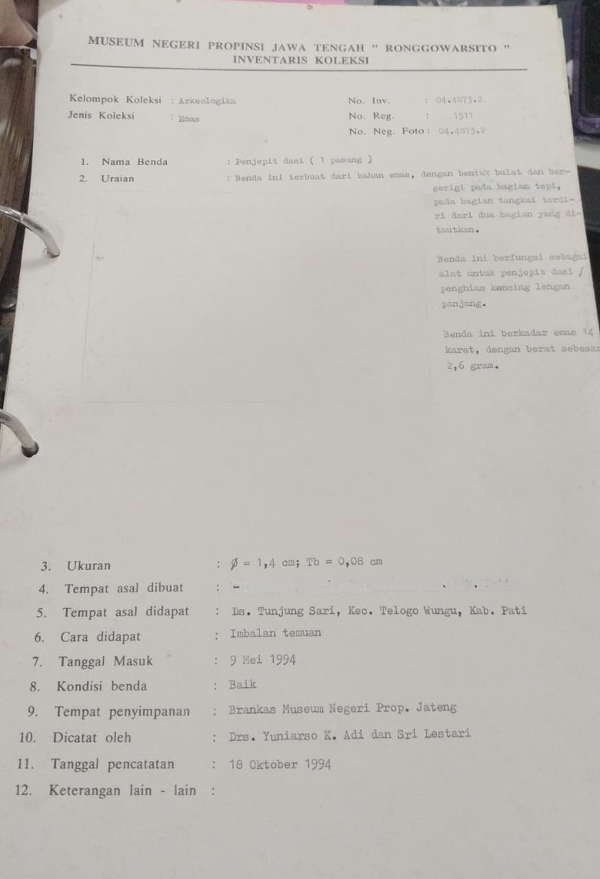 Nomor inventarisasi :