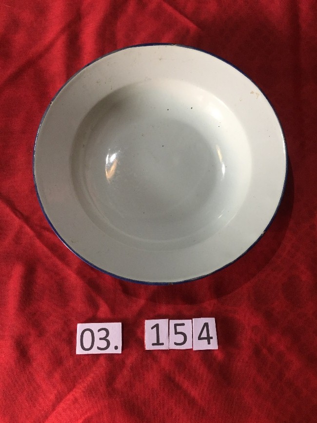 Terbuat dari porselin, bentuk bulat cembung dengan warna dasar putih.Hiasan motif tanaman bunga warna biru, pada bagian tengah terdapat tampuk atau pegangan.Benda ini disumbangan hanya tutupnya saja tidak dengan wadahnya.