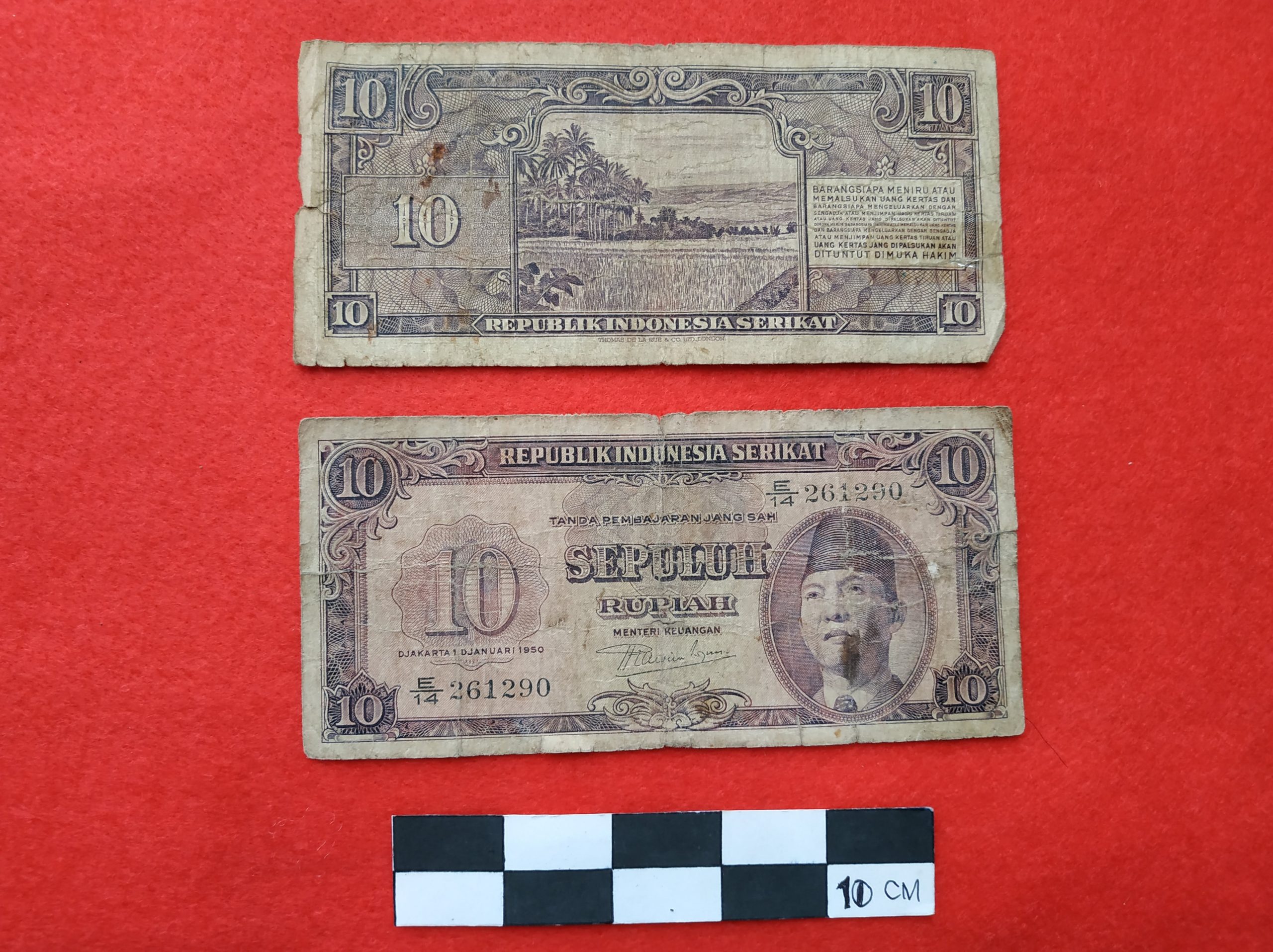 Uang kertas bergambar Soekarno merupakan uang Seri Republik Indonesia Serikat (RIS) yang bertanggal 1 Djanuari 1950, seri pengganti uang ORI, dicetak oleh Thomas De La Rue dan ditandatangani oleh Mr. Sjafruddin Prawiranegara. Pecahan 10 rupiah bernomor seri E1 sampai D19.