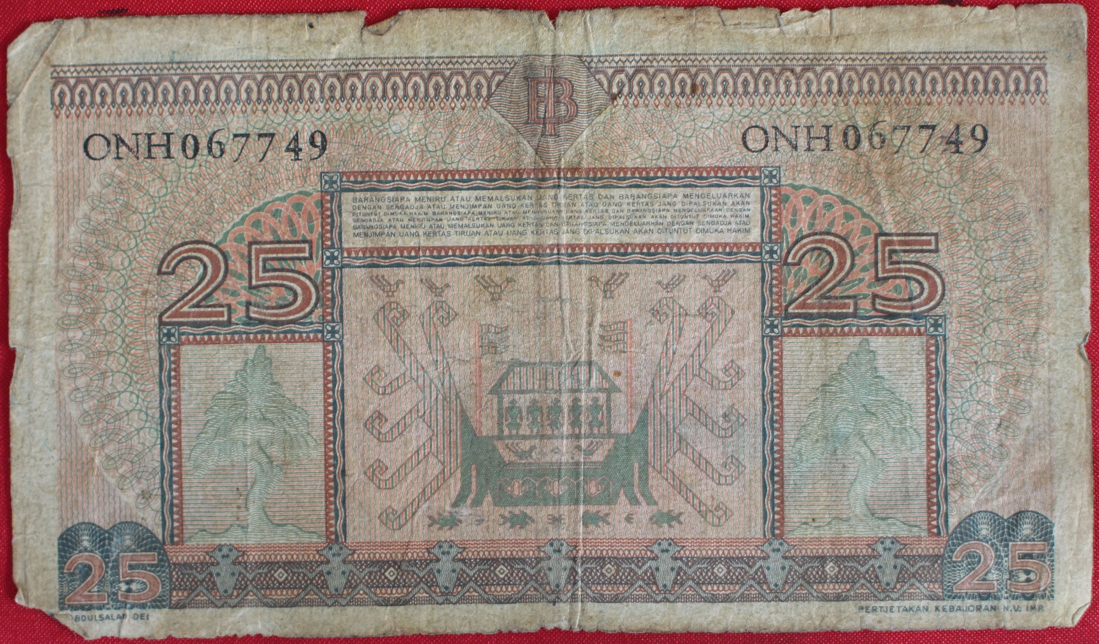 Berbentuk bulat pipih dengan bagian sisi depan terdapat lambang Kerajaan Belanda (singa dalam mahkota), tulisan NEDERLANDSCH INDIE, angka tahun 1920 dan nilai nominal uang 1 Cent. Bagian sisi belakang terdapat Aksara Jawa yang berbunyi "Sapara Satus Rupiyah" dan aksara Arab berbahasa Melayu yang berbunyi "Seperseratus Rupiah"