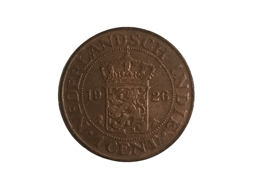Berbentuk bulat pipih dengan bagian sisi depan terdapat lambang Kerajaan Belanda (singa dalam mahkota), tulisan NEDERLANDSCH INDIE, angka tahun 1926 dan nilai nominal uang 1 Cent. Bagian sisi belakang terdapat Aksara Jawa yang berbunyi "Sapara Satus Rupiyah" dan aksara Arab berbahasa Melayu yang berbunyi "Seperseratus Rupiah"