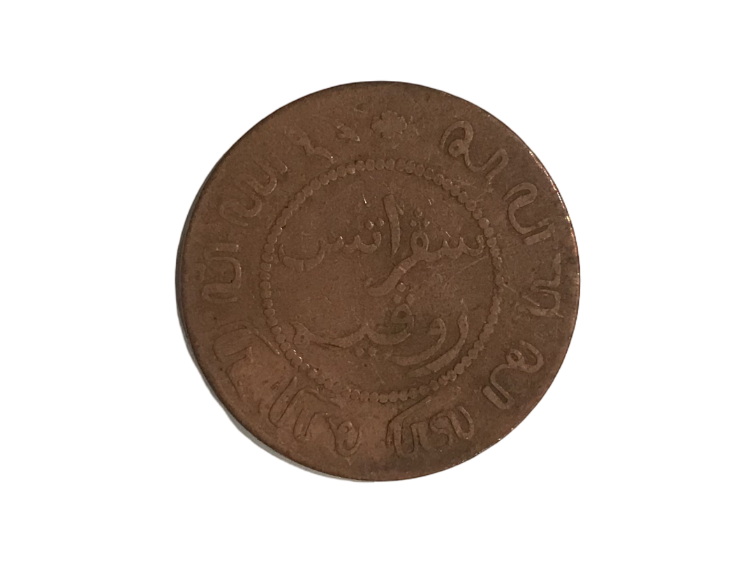 Berbentuk bulat pipih dengan bagian sisi depan terdapat lambang Kerajaan Belanda (singa dalam mahkota), tulisan NEDERLANDSCH INDIE, angka tahun 1857 dan nilai nominal uang 1 Cent. Bagian sisi belakang terdapat Aksara Jawa yang berbunyi "Sapara Satus Rupiyah" dan aksara Arab berbahasa Melayu yang berbunyi "Seperatus Rupiah"