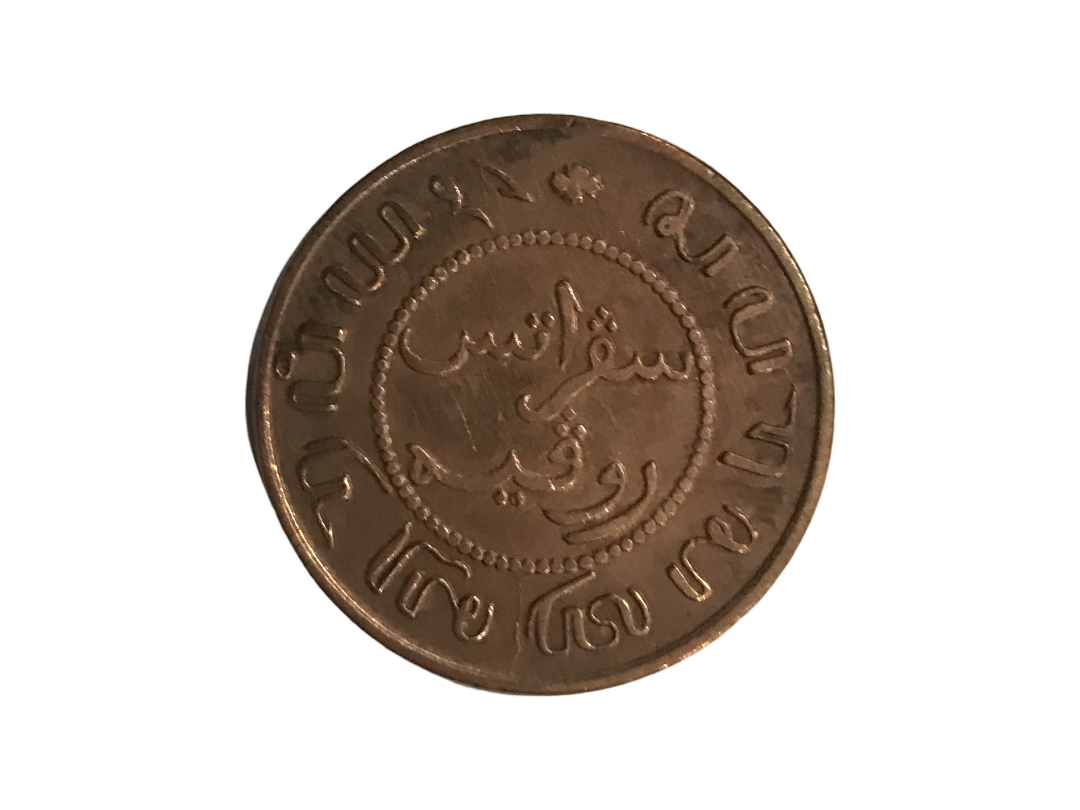 Berbentuk bulat pipih dengan bagian sisi depan terdapat lambang Kerajaan Belanda (singa dalam mahkota), tulisan NEDERLANDSCH INDIE, angka tahun 1856 dan nilai nominal uang 1 Cent. Bagian sisi belakang terdapat Aksara Jawa yang berbunyi "Sapara Satus Rupiyah" dan aksara Arab berbahasa Melayu yang berbunyi "Seperatus Rupiah"