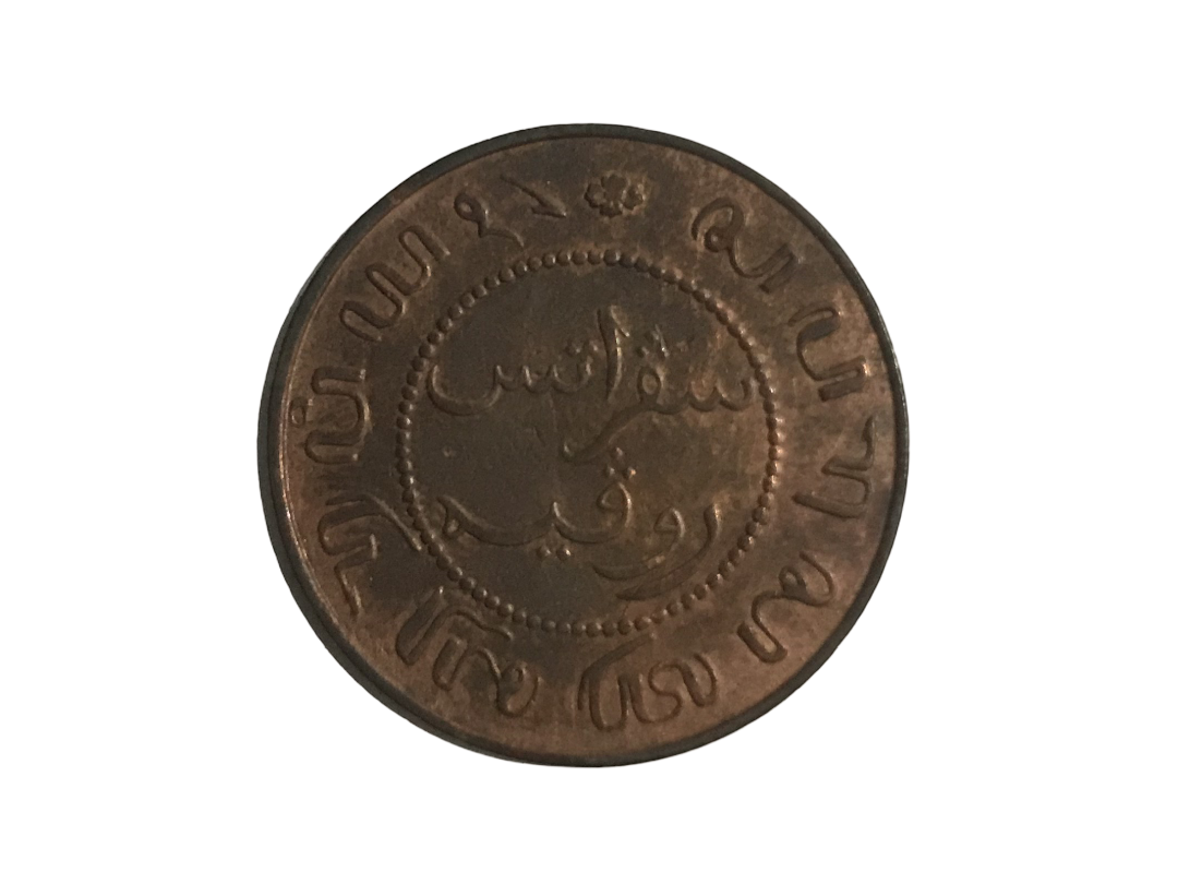 Berbentuk bulat pipih dengan bagian sisi depan terdapat lambang Kerajaan Belanda (singa dalam mahkota), tulisan NEDERLANDSCH INDIE, angka tahun 1902 dan nilai nominal uang 1 Cent. Bagian sisi belakang terdapat Aksara Jawa yang berbunyi "Sapara Satus Rupiyah" dan aksara Arab berbahasa Melayu yang berbunyi "Seperatus Rupiah"