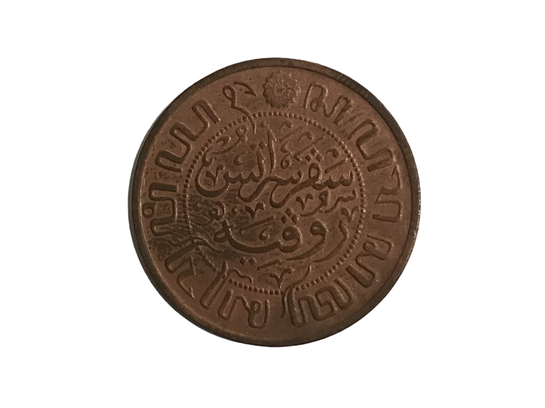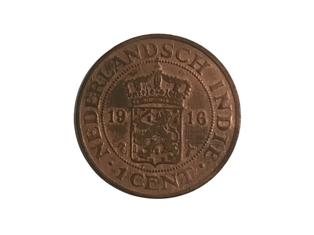 Berbentuk bulat pipih dengan bagian sisi depan terdapat lambang Kerajaan Belanda (singa dalam mahkota), tulisan NEDERLANDSCH INDIE, angka tahun 1916 dan nilai nominal uang 1 Cent. Bagian sisi belakang terdapat Aksara Jawa yang berbunyi "Sapara Satus Rupiyah" dan aksara Arab berbahasa Melayu yang berbunyi "Seperseratus Rupiah"