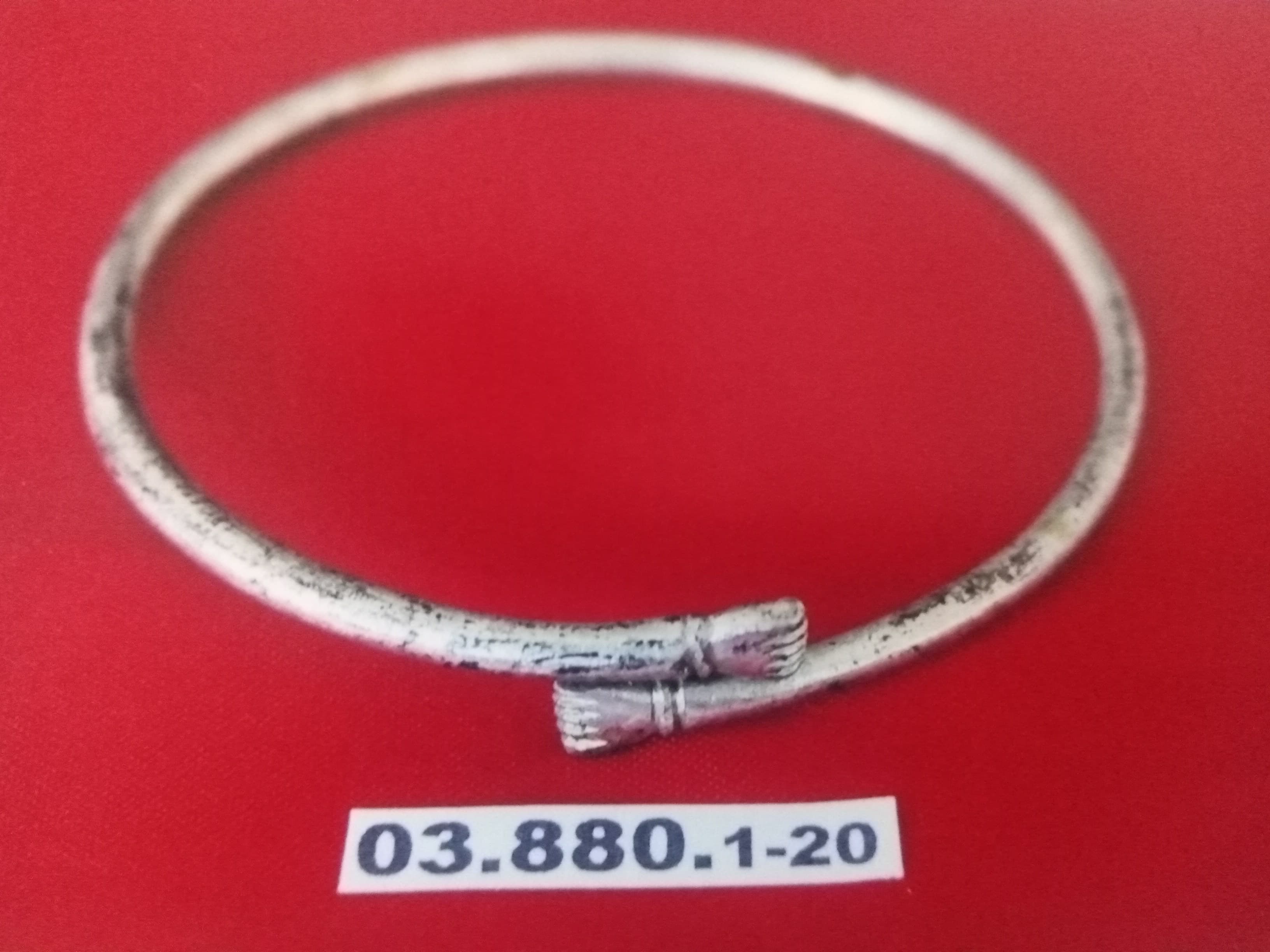 Uang emas bertipe piloncito ini diperkirakan pada abad VIII-X M. Bentuk agak kubus, salah satu sisinya cekung dengan garis menonjol di tengah dan sisi yang lain bertuliskan huruf Nagari atau Jawa Kuno. Uang ini sering dipakai untuk perlengkapan upacara dan berfungsi sebagai bekal kubur yang ditempatkan di peripih. Koleksi ini merupakan barang hasil sitaan.