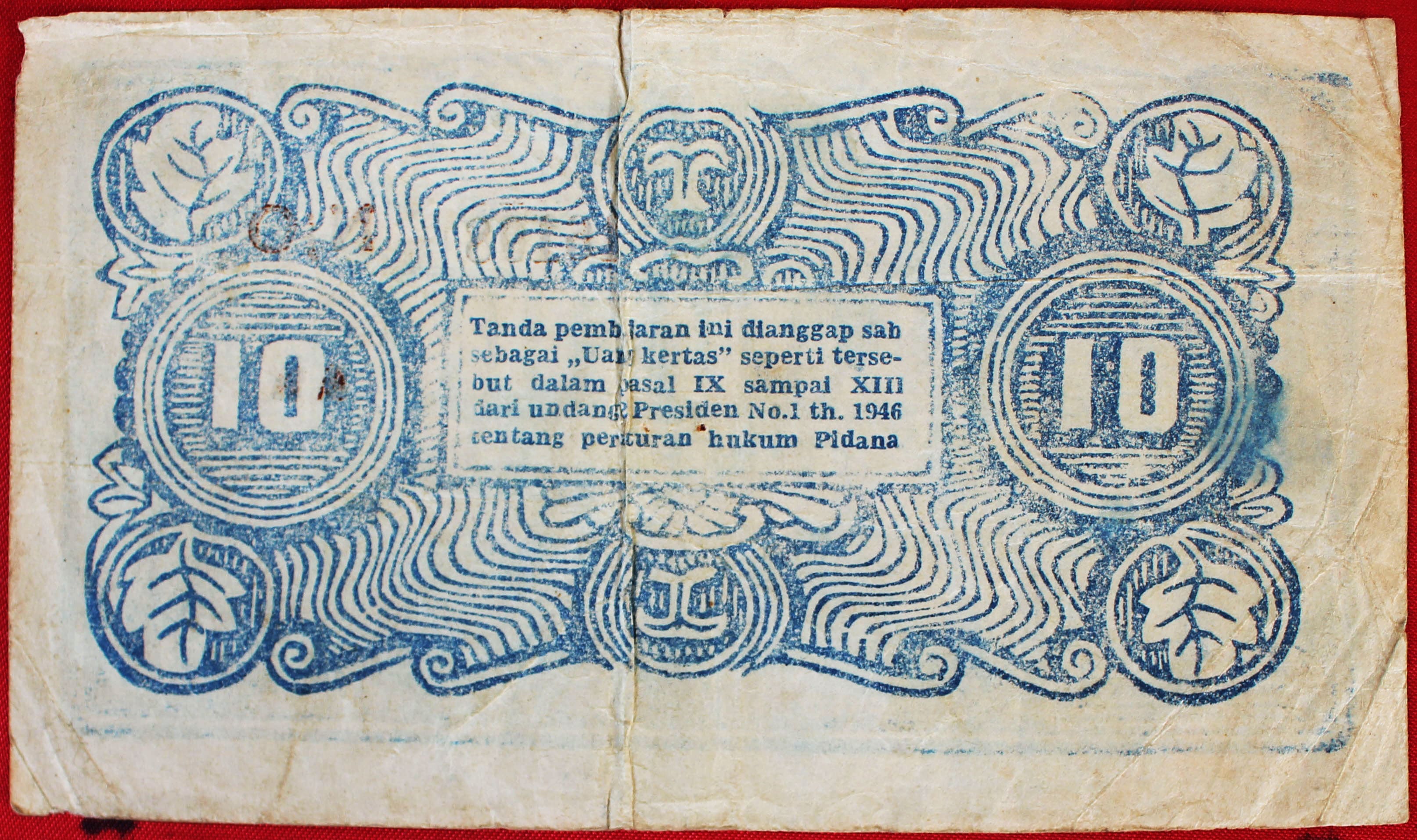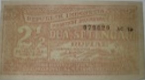 Uang Dua setengah rupiah dengan warna dasar putih dan merah tahun 1948