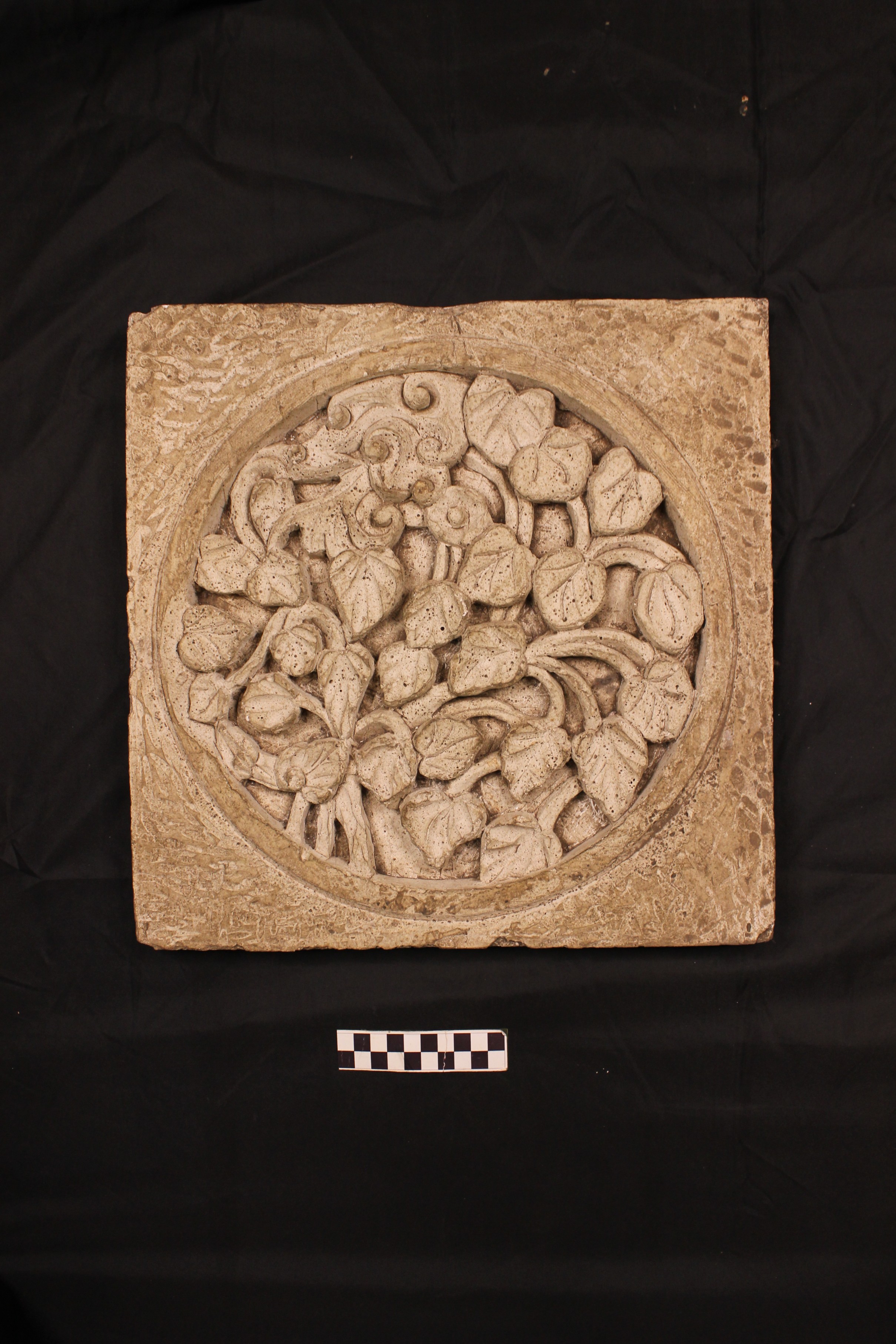 Objek berbentuk persegi didalamnya terdapat bentuk lingkaran / medallion terbuat dari batu putih dengan hiasan berupa flora pada permukaannya. Objek berfungsi sebagai hiasan