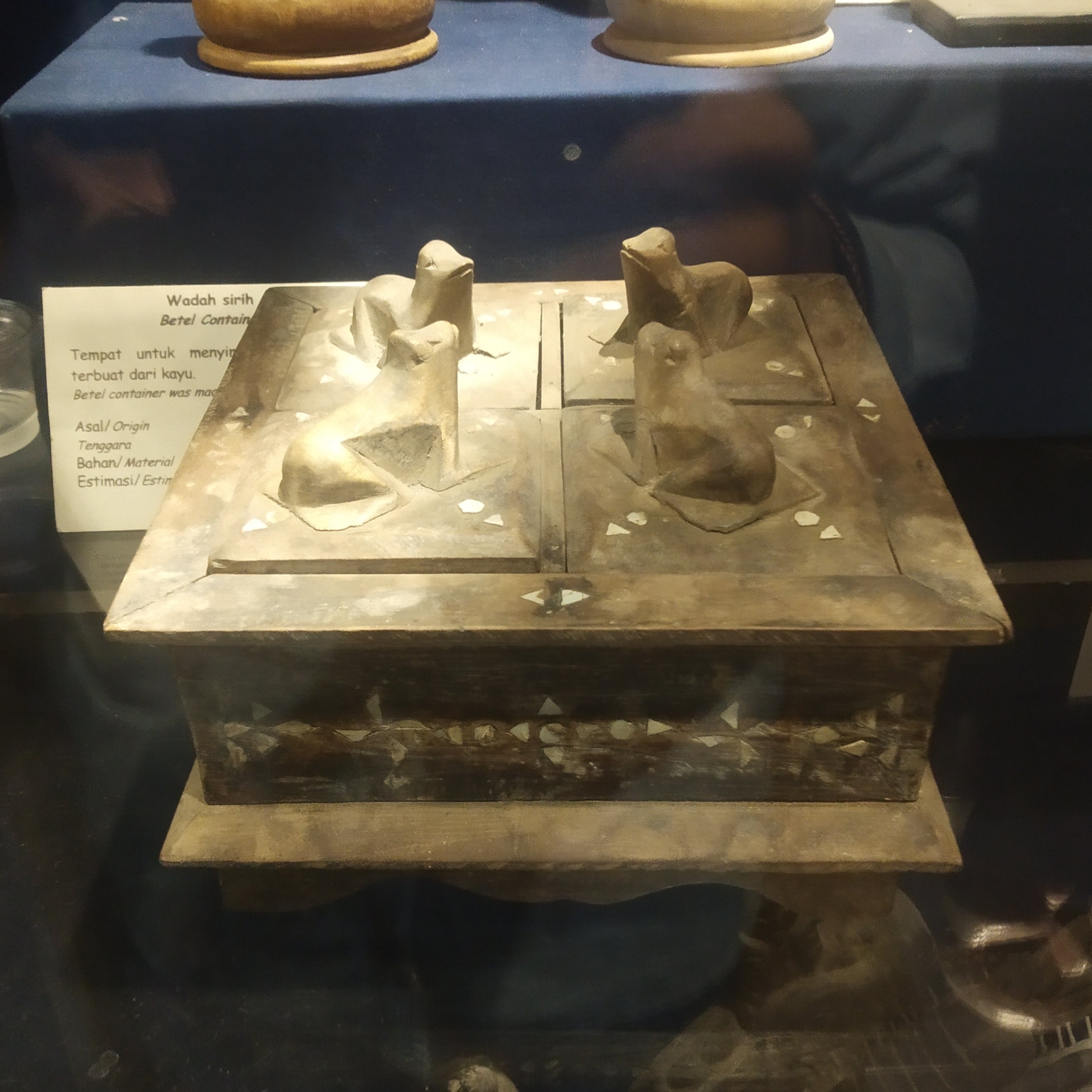 Vas berwarna putih ini terbuat dari bahan porselin. Secara umum bentuknya bulat dengan kaki yang pendek pula, sedangkan bagian leher memanjang dengan bagian mulut yang lebar. Benda ini memiliki ornamen berupa kembang, dan geometris. Warna dari ornamen tersebut merupakan kombinasi antara merah, biru, kuning, dan jingga, sedangkan warna dasarnya adalah putih. Kondisinya vas berglasir ini dalam keadaan baik. Koleksi ini merupakan peninggalan dari Kesultanan Kutai.