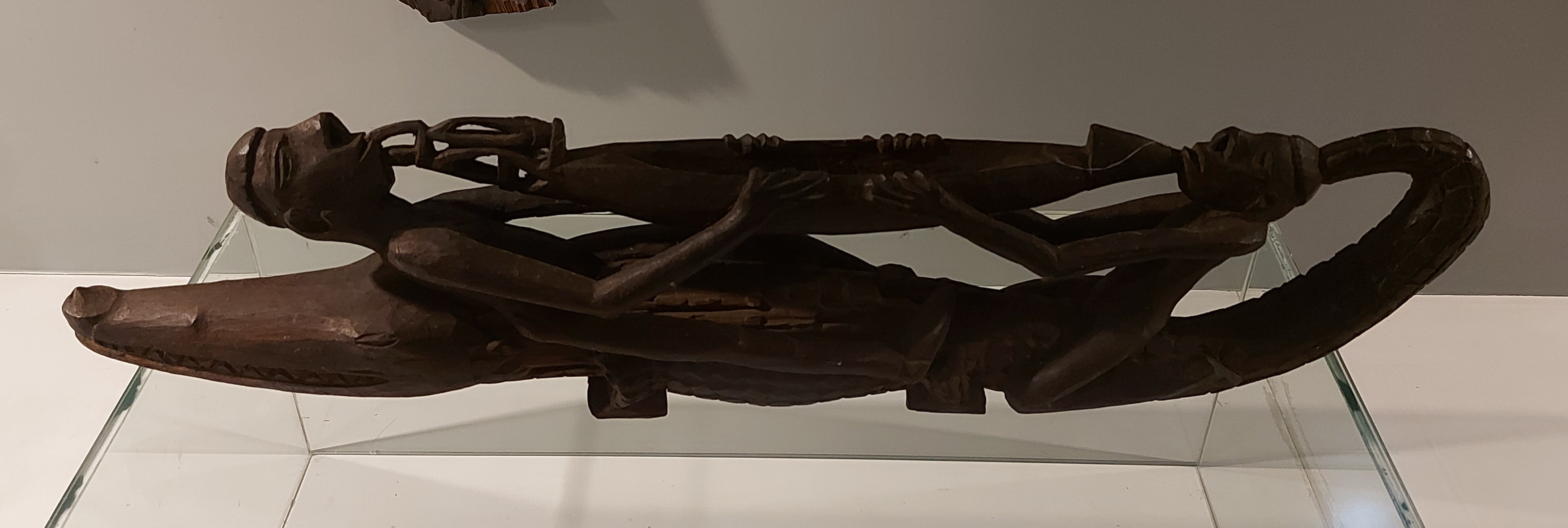 Wadah cat yang mereka gunakan diukir dengan ornamen nenek moyang. Suku Asmat hanya mengenal tiga macam warna dalam kehidupannya, yaitu merah, hitam dan putih. Warna hitam berarti kegelapan, didapatkan dari arang. Warna putih, berarti tulang manusia didapatkan dari cangkang kerang yang dihaluskan, sedangkan warna merah, berarti darah manusia didapatkan dari campuran tanah merah ataupun dari getah tumbuhan.