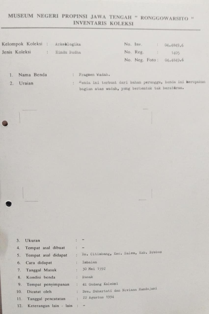 Nomor inventarisasi :