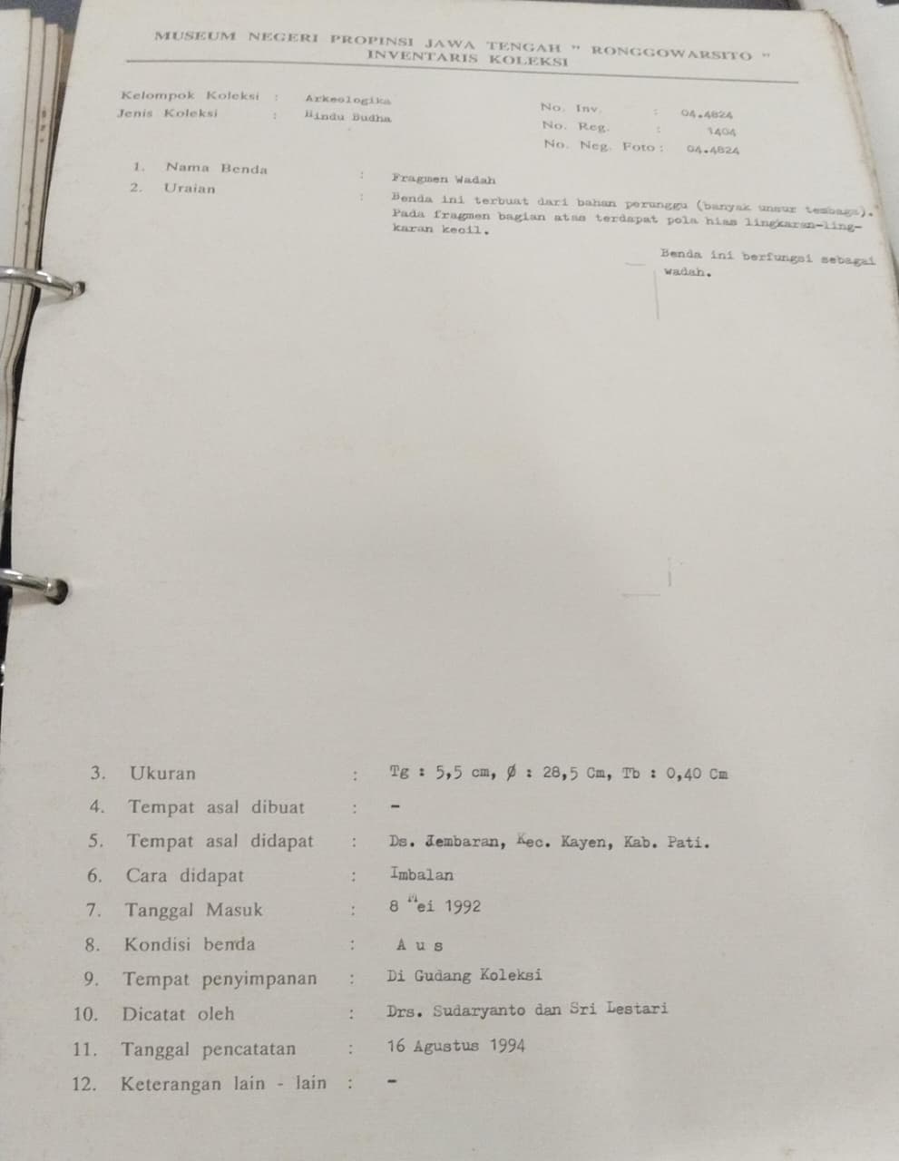 Nomor inventarisasi :