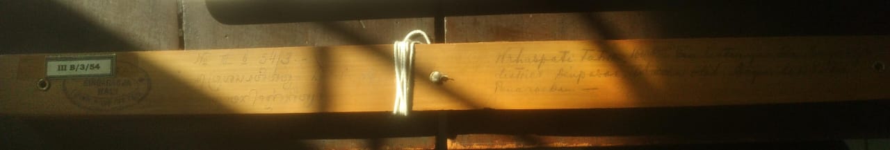 warna dengan tokoh Bagong terbuat dari kulit kerbau, wayang berwarna coklat keemasan dan prodobrome, ada motif dibeberapa bagian, terdapat kain berwana merah, wayang ditempel di panel dengan ukuiran 50x70