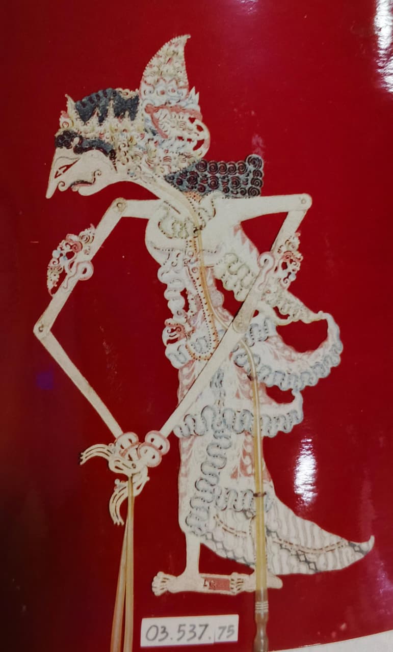 Benda ini terbuat dari kulit penyu. Berwarna coklat, merah, biru, kuning. Berambut gelung, memakai sumping, muka nunduk, memakai dodot dan jarik lereng.
