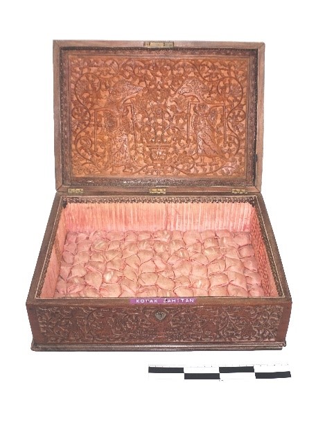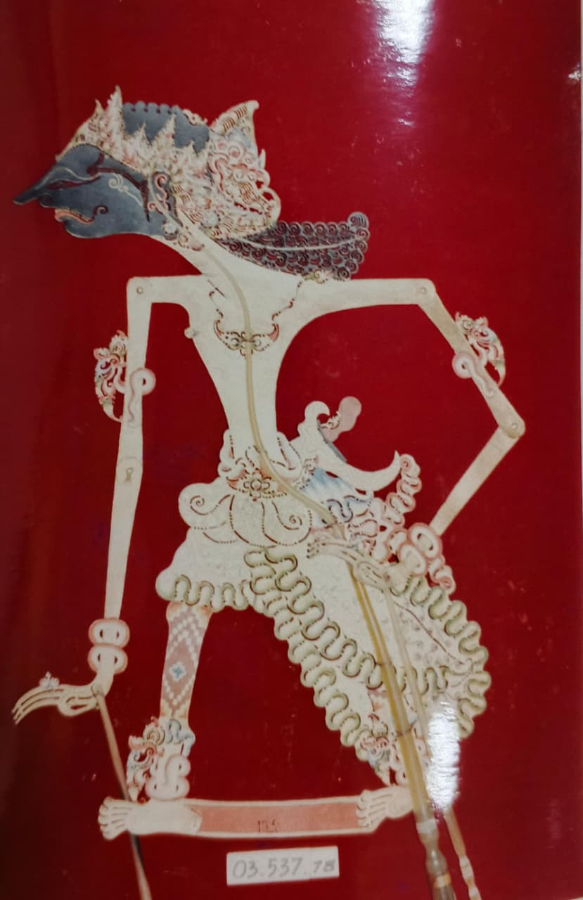 Benda ini terbuat dari kulit penyu. Berwarna coklat, merah, hitam, hijau. Berambut panjang, hidung mancung, dada terbuka, bercelana panjang dan bersenjata keris.
