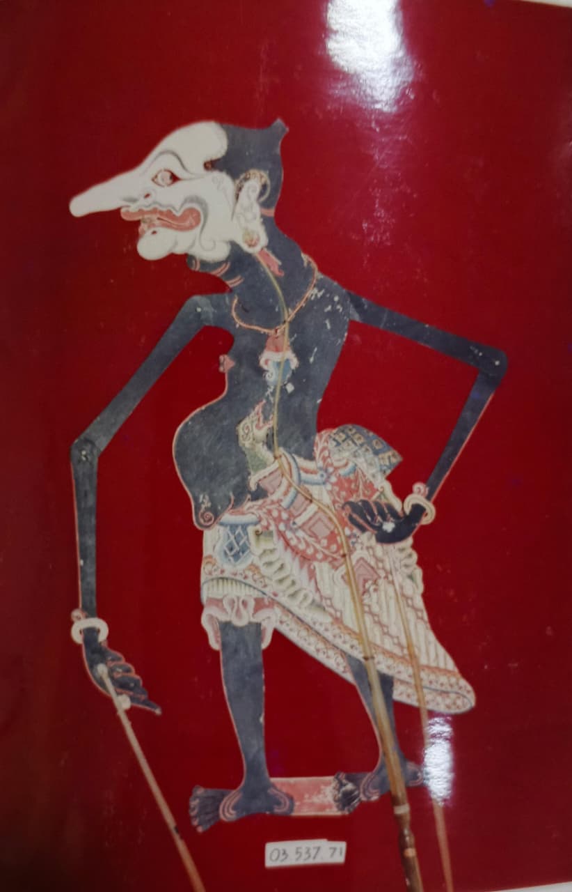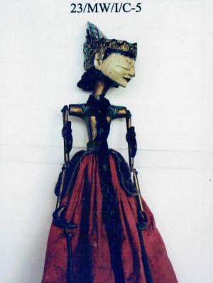 Benda ini terbuat dari kulit penyu. Berwarna hitam, coklat, merah, hijau, kuning. Muka putih, hidung mancung, memakai kuluk, badan hitam, celana pendek, jarik lereng.