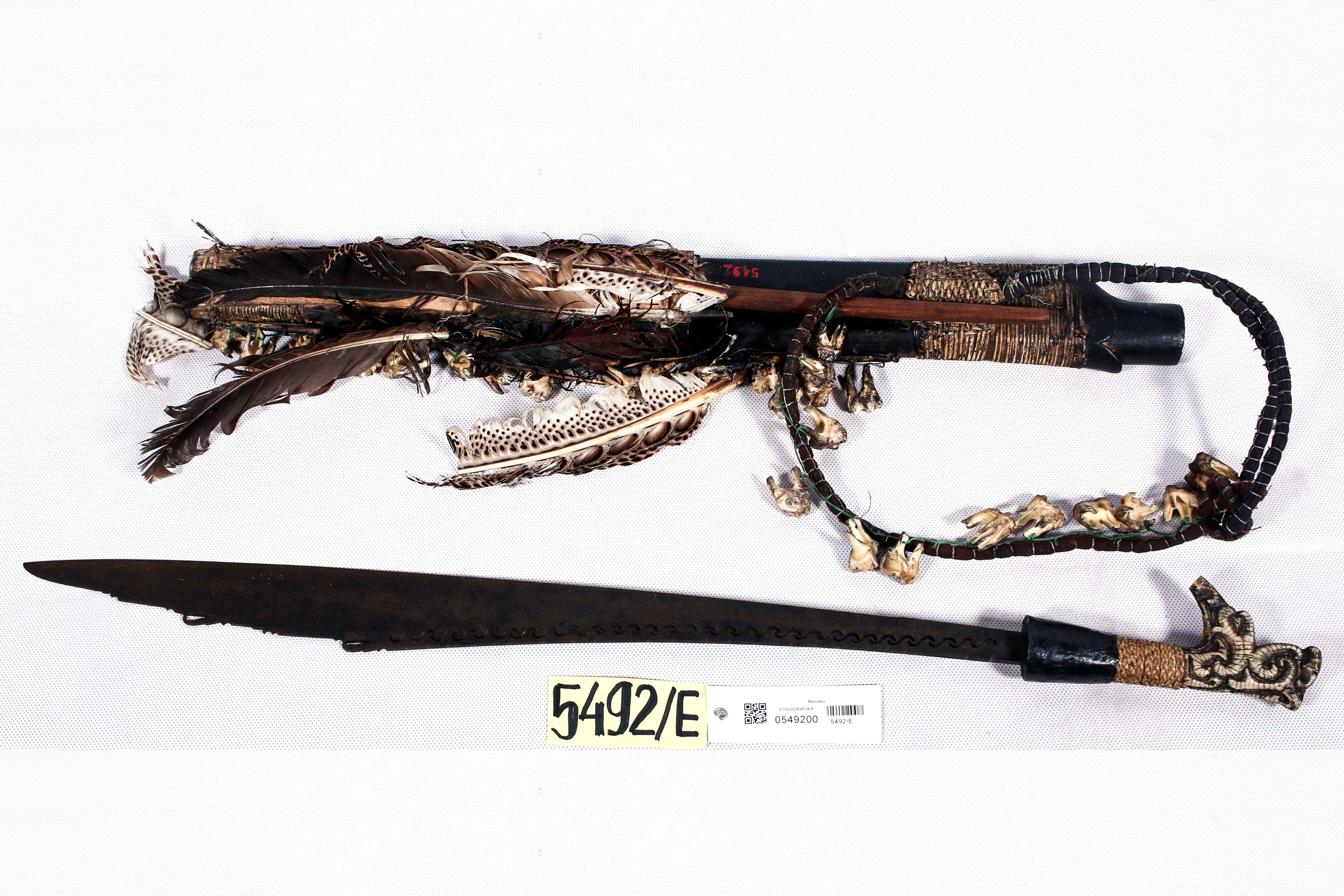 Banda ini terbuat dari kulit dan Bambu, Berwarna merah, kuning, abu-abu, hitæ, rambut gimbal, hidung besar, mulut besar, mata mo-lotot.