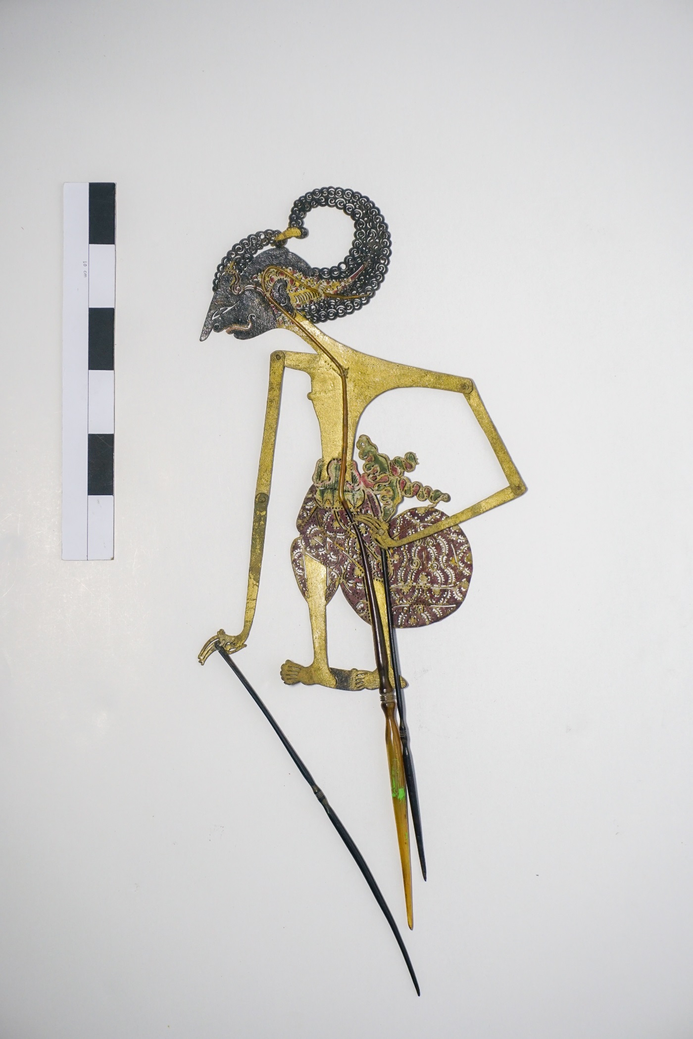 Wayang kulit tokoh Arjuna gagrak Banyumas. Wayang dibuat oleh Bau Rana Sampun asal Kemranjen pada awal abad XX. Telah disungging ulang pada 1948.