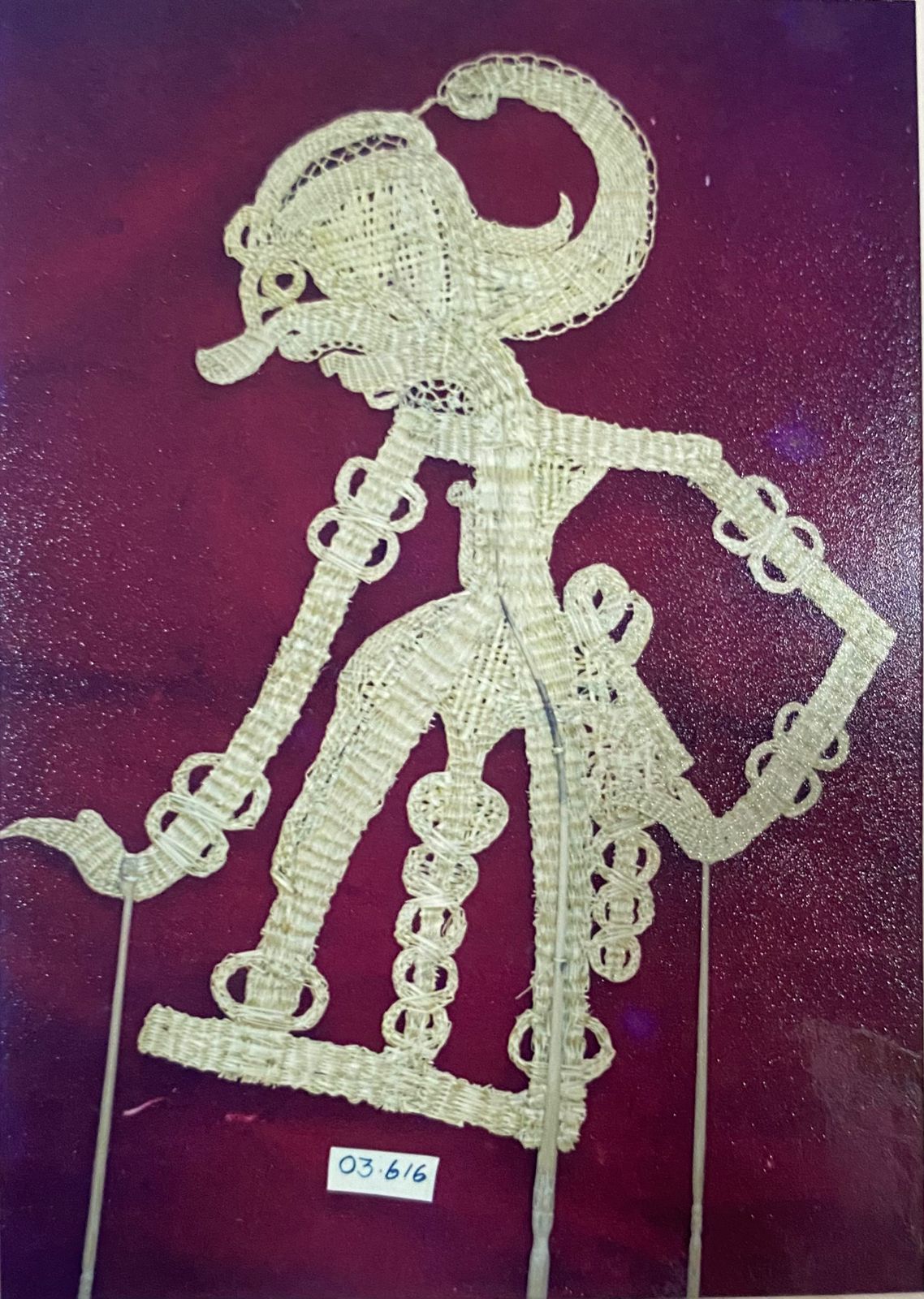 Dibuat dari bahan rumput "Kasuran" sejenis rumput yang ulet. Bentuk anyaman ini menggambarkan Tokoh Wayang Werkudoro, merupakan ciptaan Pak Gepak berasal dari Desa Bantar Barong, Kecamatan Rembang, Kabupaten Purbalingga. Untuk menyelesaikan satu tokoh wayang membutuhkan waktu 3-4 malam, pekerjaannya diawali dari bagian hidung dilanjutkan ke bagian lain. Motif anyaman bervariasi bentuk silang, diagonal, spiral, tikar, gedek, sarang lebah dan kelabang.