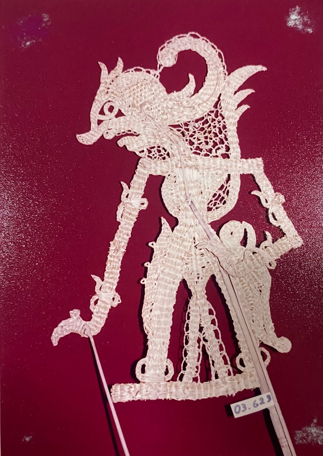 Terbuat dari bahan sejenis rumput yang dianyam dan dipilin. Ia adalah putra Werkudoro dengan Dewi Arimbi dari negara Pringgadani. Aksesoris yang dipakai yaitu ia memakai gadong dua ikat bahu dan dua kakinya pakai gelang. Badan dari wayang ini di cepit dengan bambu pucul untuk pegangan ketika dimainkan.
