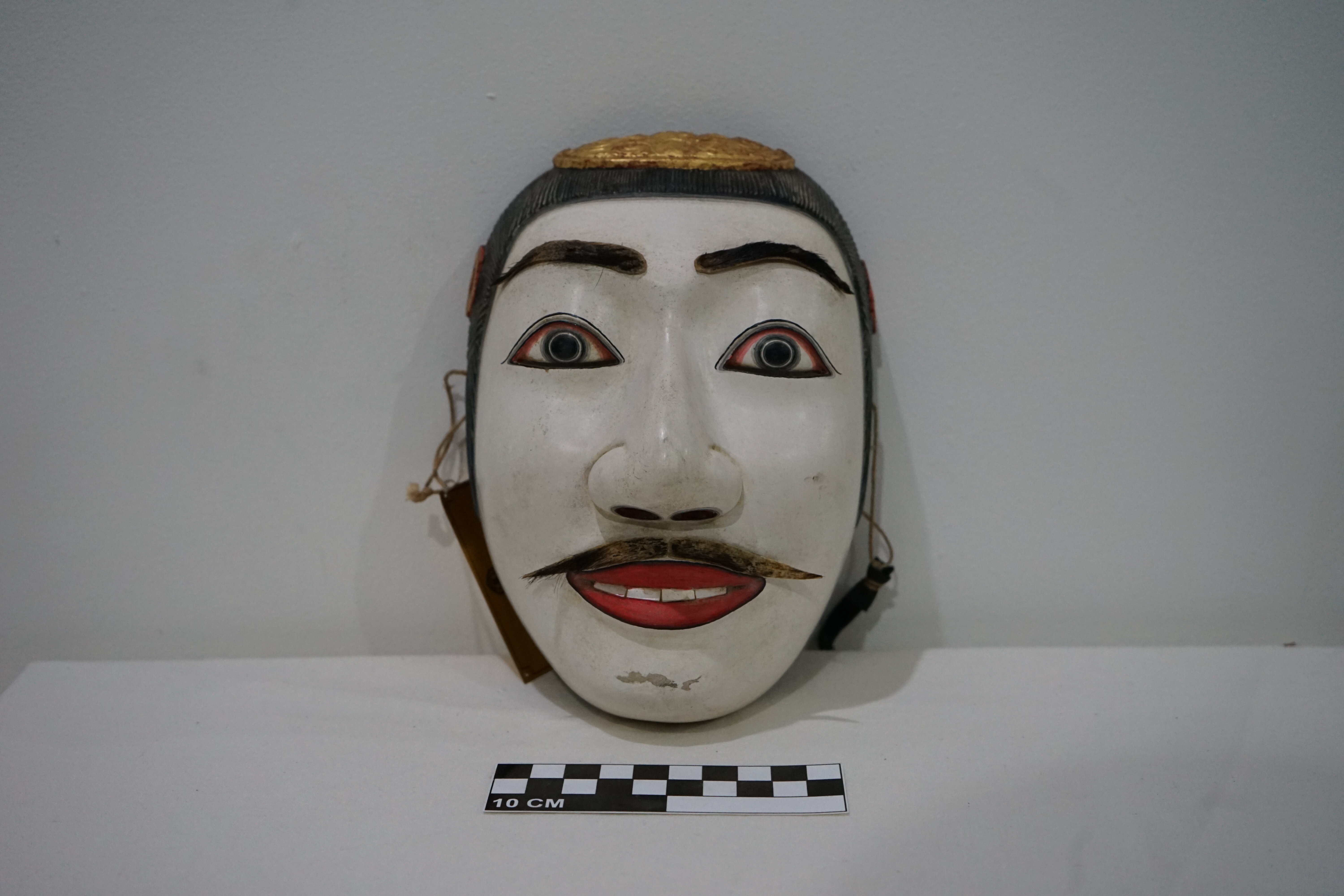 Benda ini terbuat dari bahan batu berwarna kecoklatan, dibagian tengah berlubang.